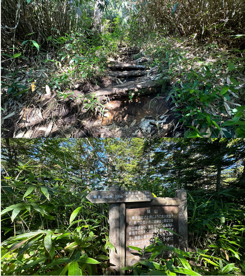 ここから鉢山を越えないと四十八池に行けないので登るしかないのですが、結構道が荒れている受けに急坂、
