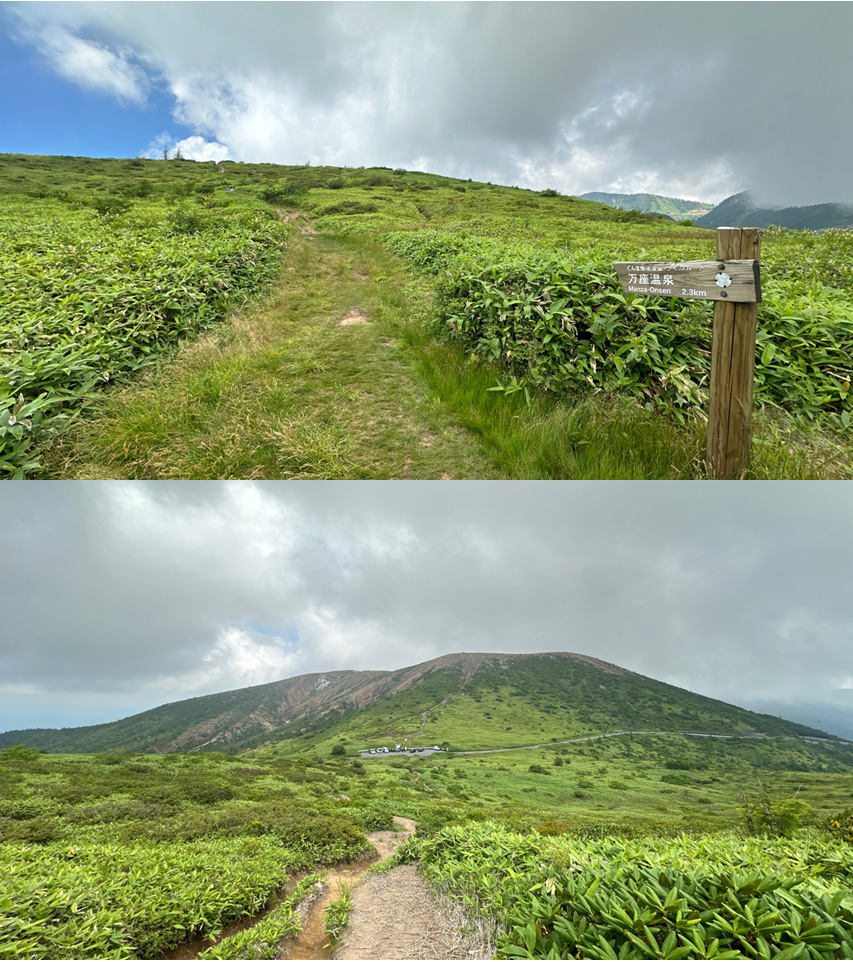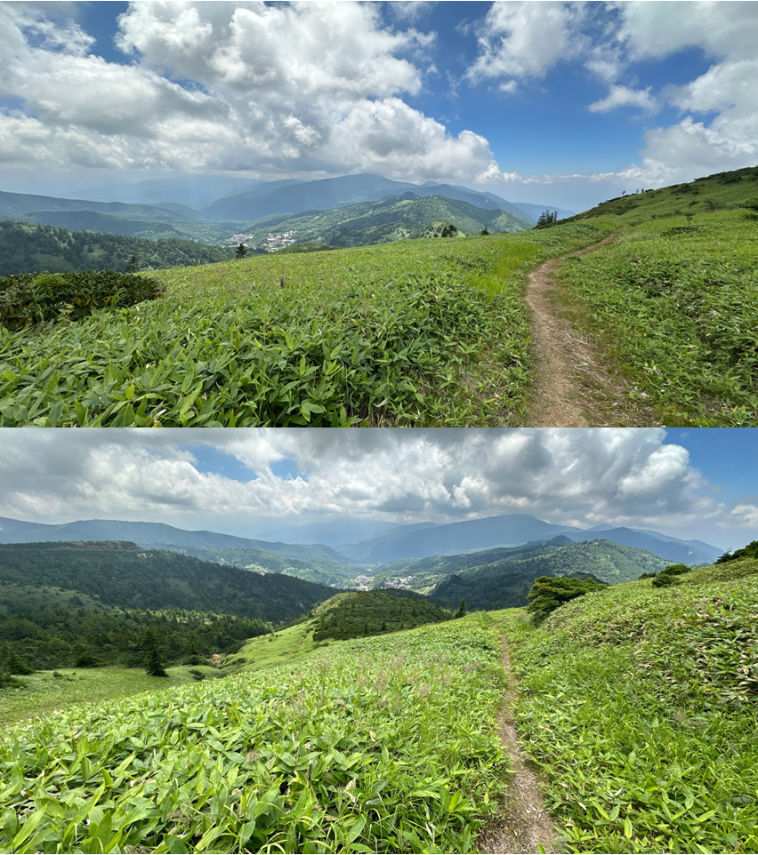 万座温泉へ稜線を下っていく凄く気持ちの良い道が暫く続きます。