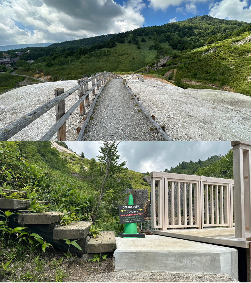 なんでも万座温泉はだいぶ熊が侵食してきてるそうで、いたるところに熊の通り道の看板が。