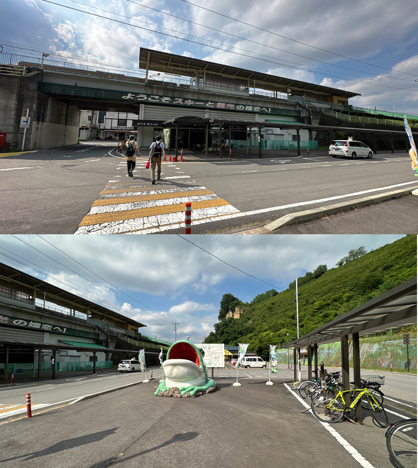 ここには、いま「このすば」のコラボで駅前にジャイアントトードのオブジェが設置されてます。
