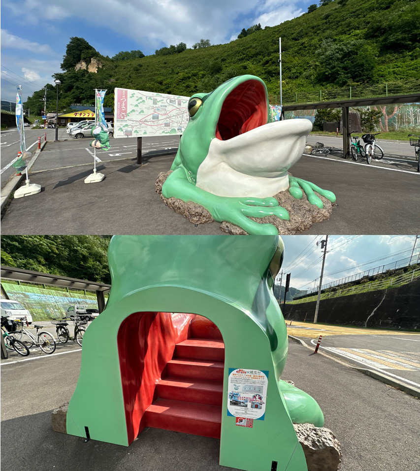 ガチで人間飲み込めるデカさなんですが、裏側が階段になってて、むしろ中に入って飲み込まれてる風の記念写真を撮るモノなのね。