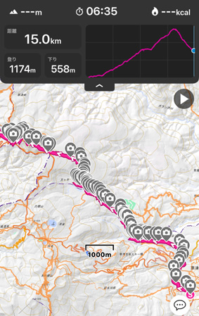 距離15kmで累計登りが1000m越えているので結構キツイですね。特にこの猛暑の中なので。