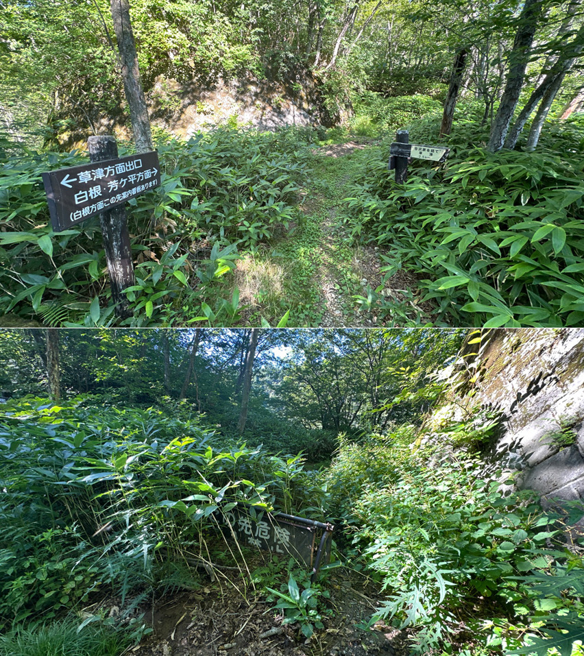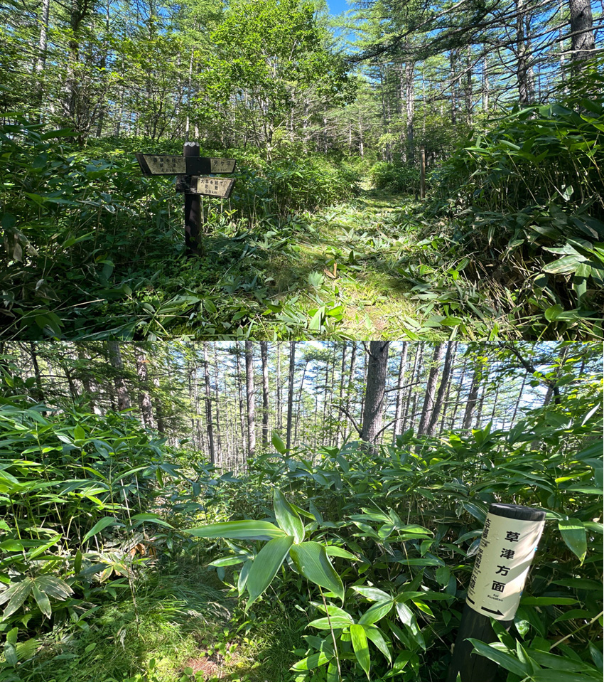 少し進むと白根山方面との分岐がありますが、当然、白根山方面は立入禁止で規制中。