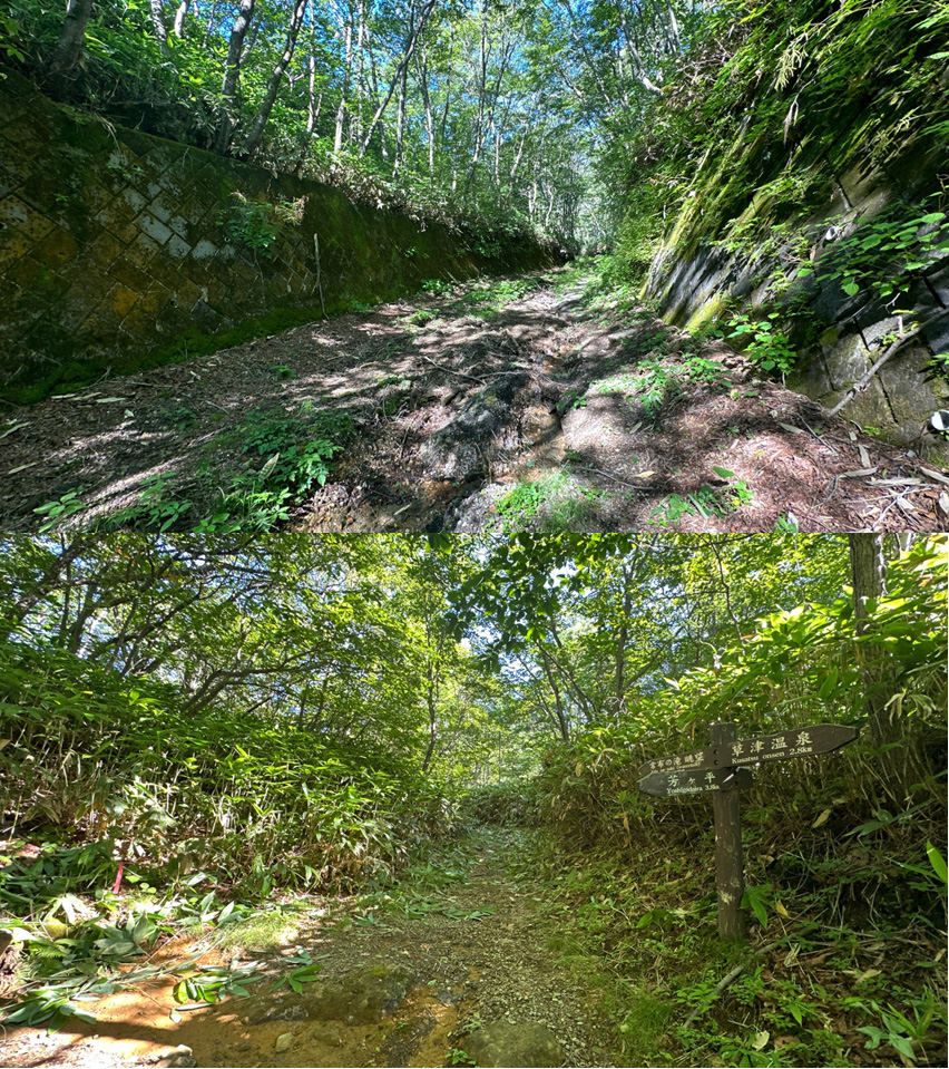 ここは雨天時にだいぶ水が流れ込むのか中央がかなりえぐれてしまって歩きにくいですね。