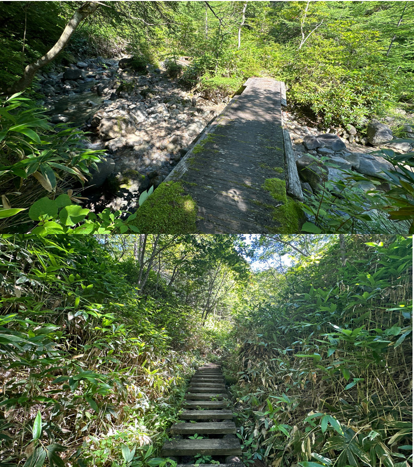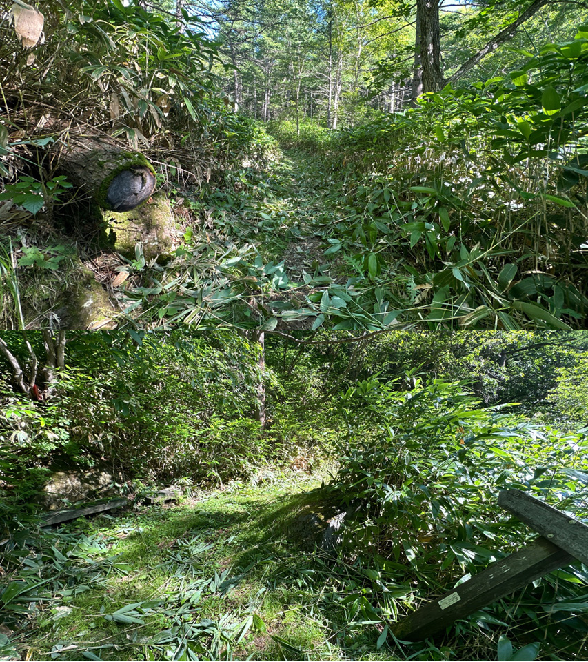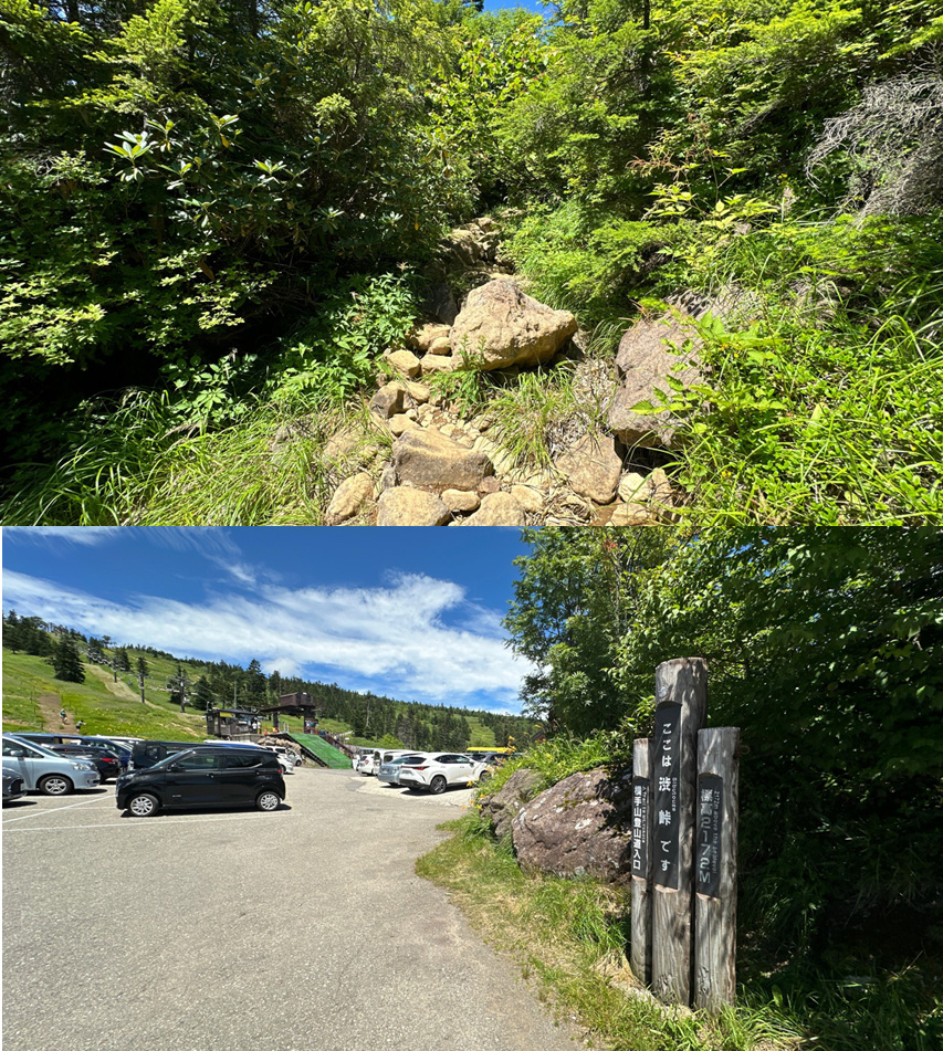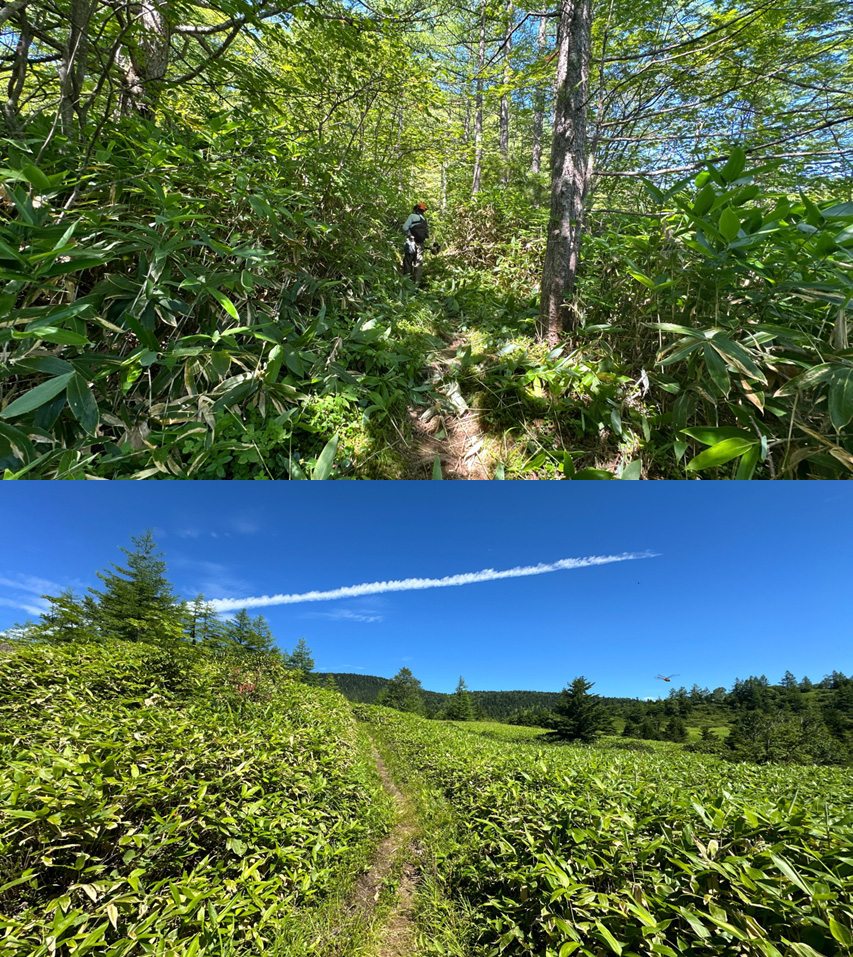 渋高原側はスキー場ではないので結構道が険しいです。細くて岩も多いので注意。