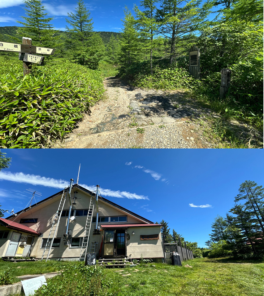 まっすぐ進んで芳ヶ平ヒュッテへ。宿泊や軽食を出してるんですが基本は事前予約しないと無人。