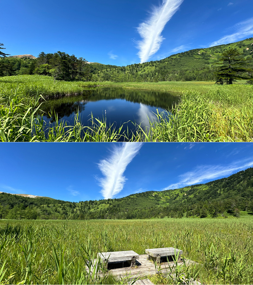 ヒュッテから少し進むと芳ヶ平の湿地地帯でも木道が整備された景観地。