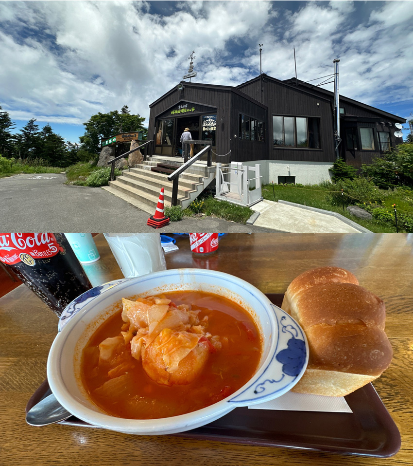 とりあえず山場は越えたので、お腹も空いてきたので横手山ヒュッテでお昼ご飯にすることに。