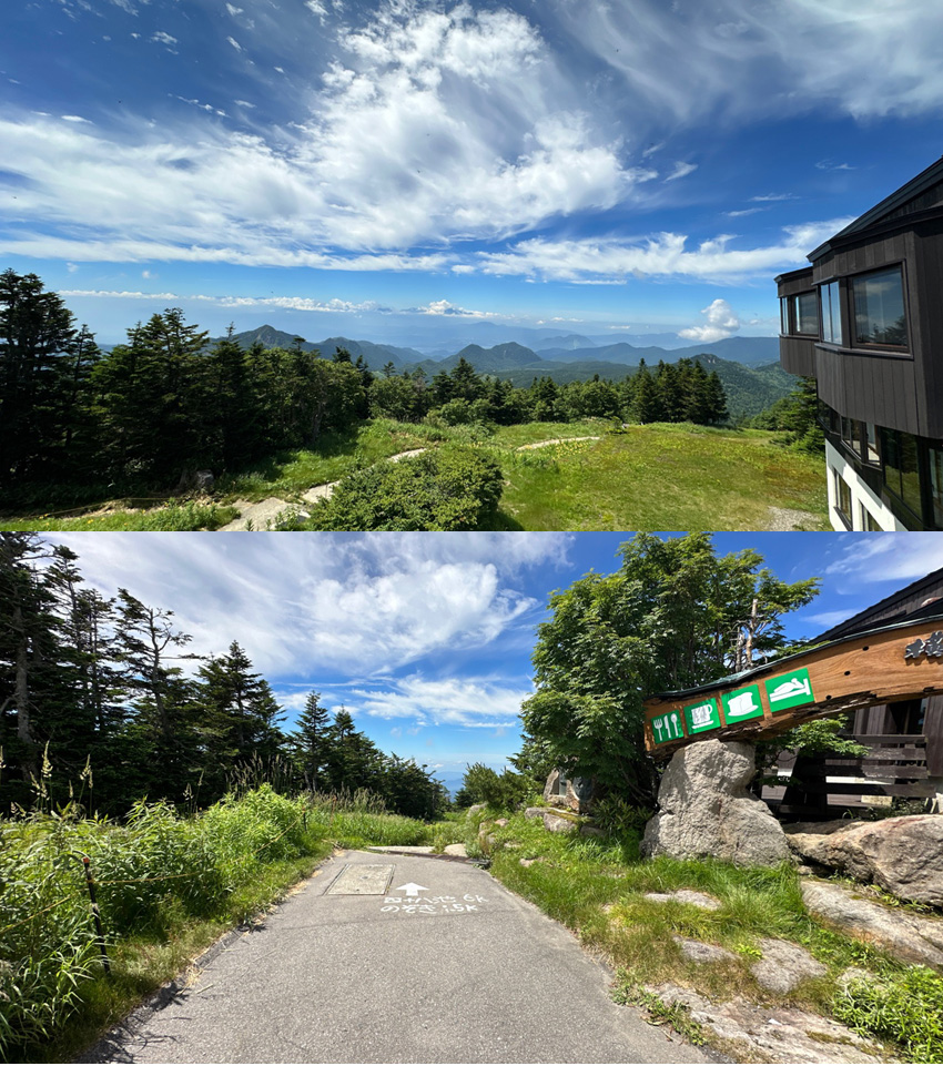 熱中症にならないようにこまめに休憩入れながら登っていくと急に道路に。ここが渋峠。
