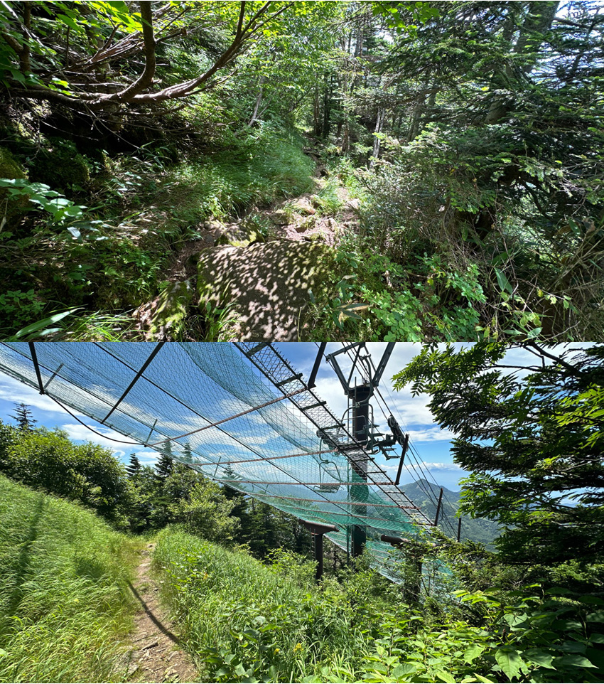 横手山ドライブイン、「のぞき」と称される地点に降りる手前が、ガレ場の急坂なんですが、