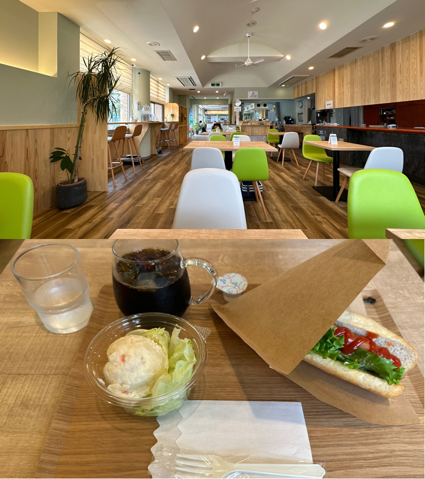 とりあえずホットドッグとミニサラダ、アイスコーヒーのセットたのんでヨーグルト付けたら1000円越えてしまった。