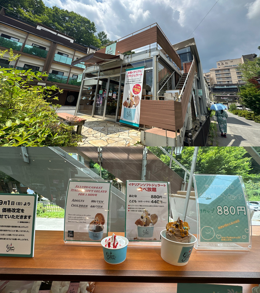 そんなワケで温泉に行く前に、すぐ近くのジェラート食べ放題のお店に入ってみることに。