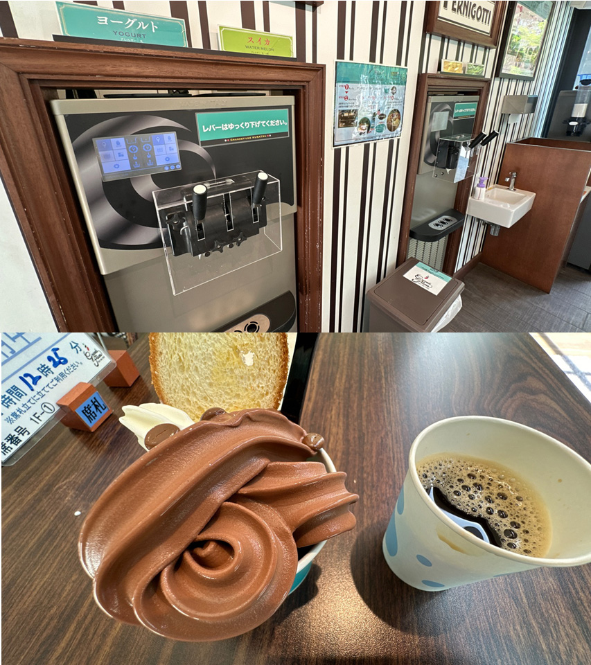 2台のジェラートマシンで4つの味が楽しめて、ドリンクバーでコーヒー紅茶などが無料。