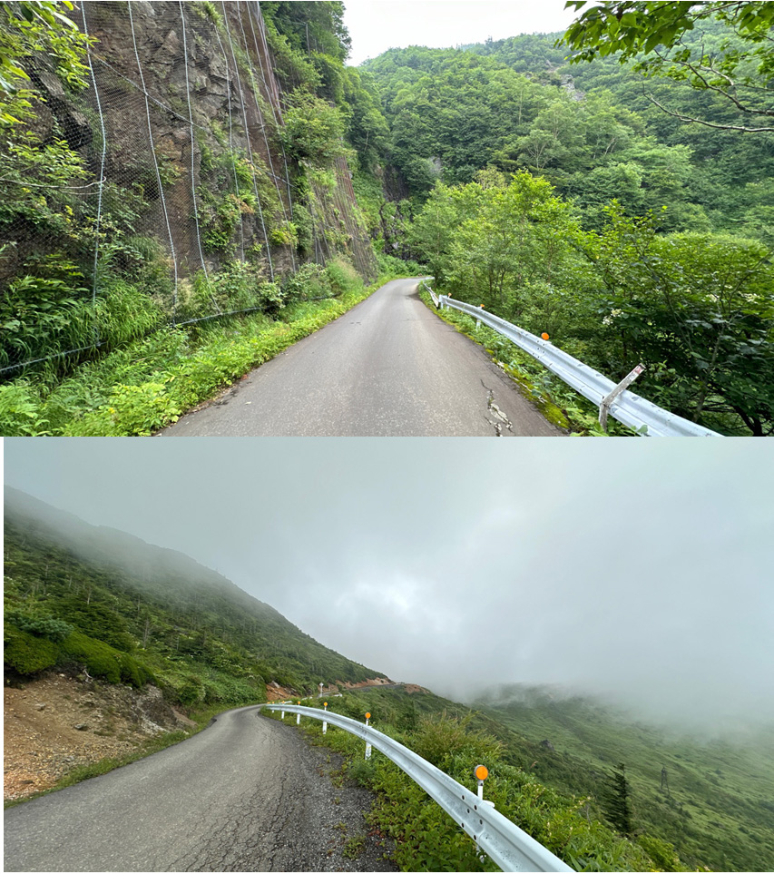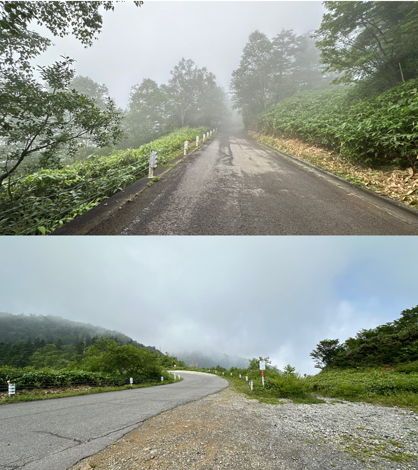 万座温泉から離れると雨の降る範囲から外れたのか薄曇りの中を進む状態。