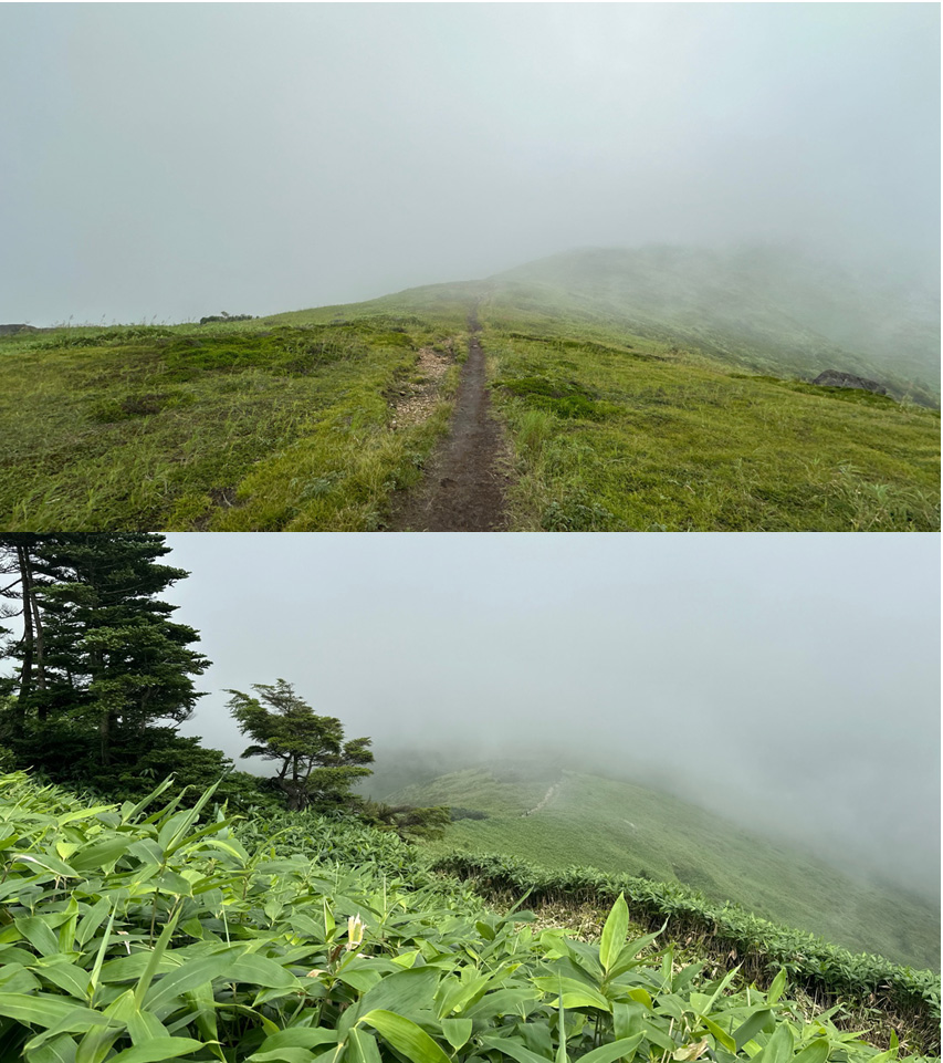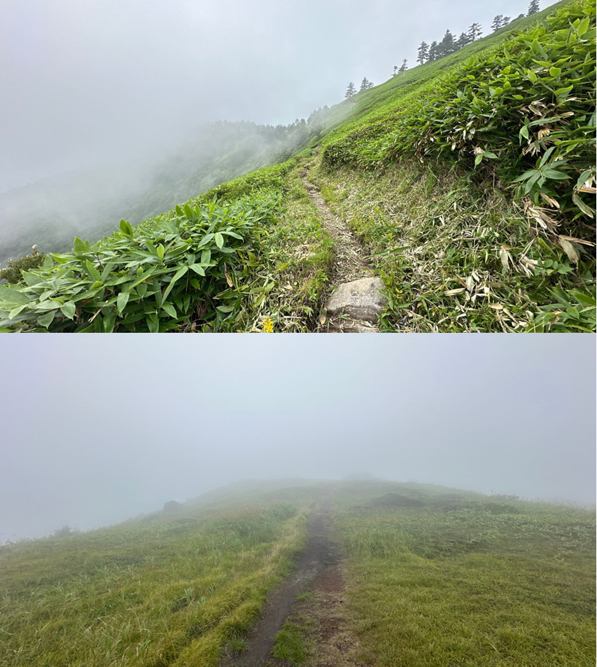 破風岳には、車できた人たちが何組か登ってましたが小雨が降ってきてるのでそうそうに降りてきていてすれ違いに。