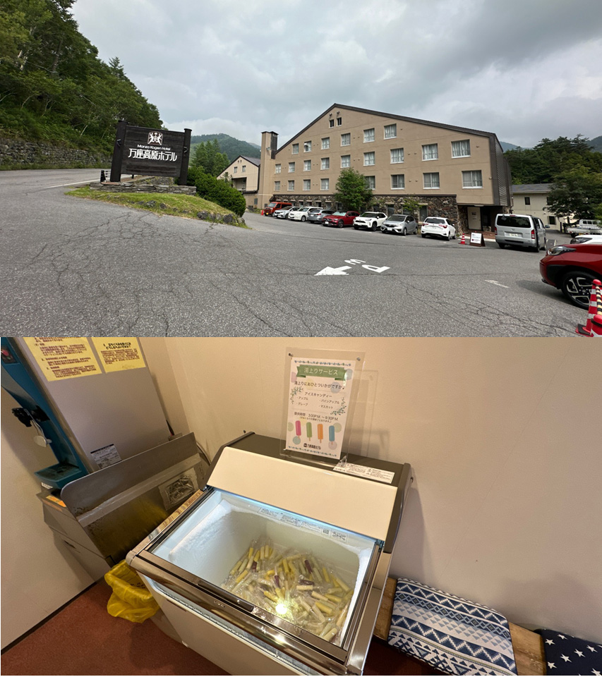 今日は、こちらもバス停の最寄りになりますが、万座高原ホテルのほうの日帰り温泉を利用してみることに。