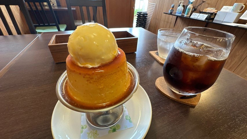 花栞さんに戻って荷物を引き取り、まだ時間に余裕があったので、気になってたプリンを注文。