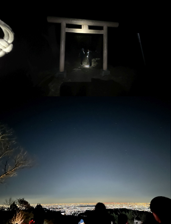 体温まっていいですが。山頂はまだ暗いですが海まで遮るものがない素晴らしい眺め。夜景がすごい。